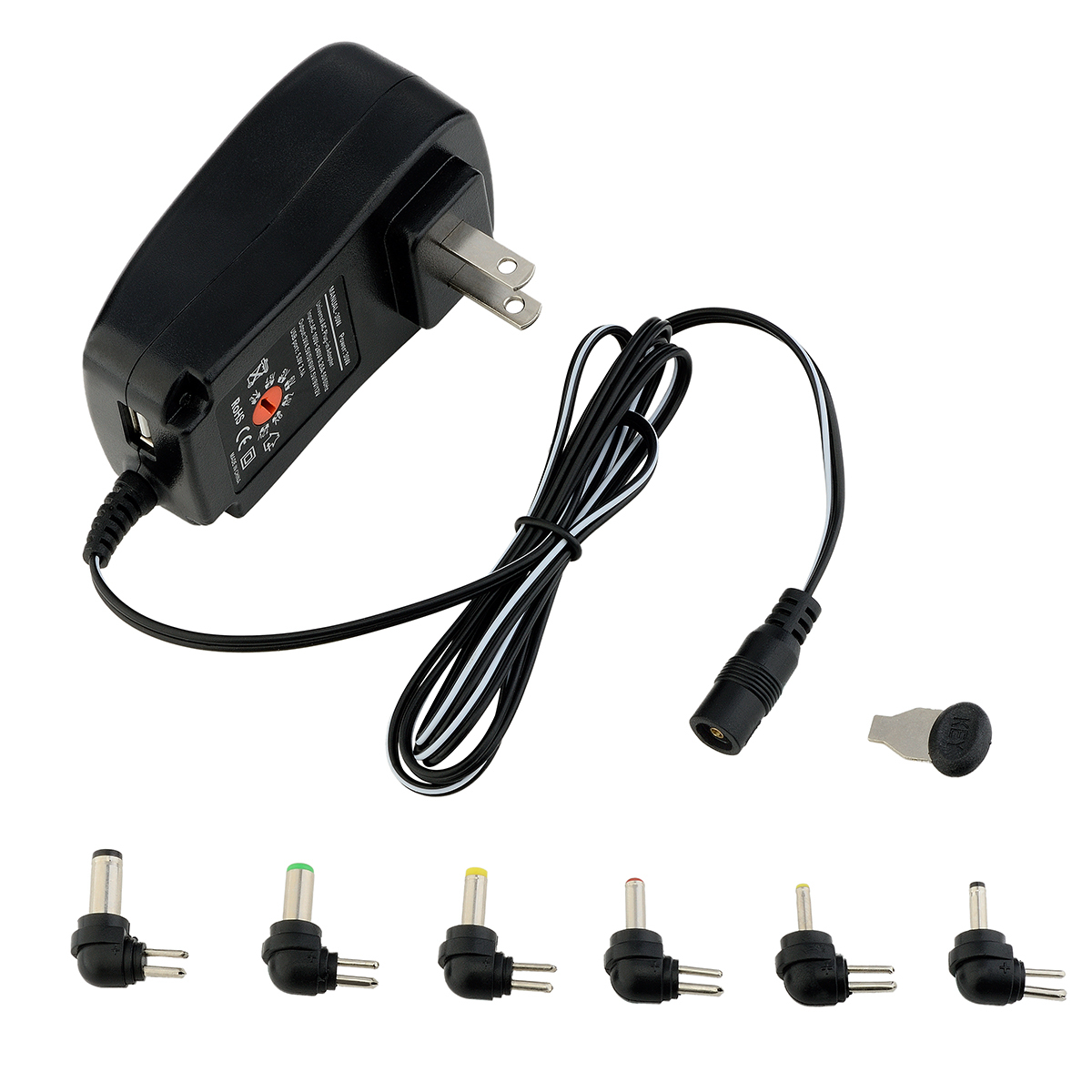 Adaptador de corriente CC de 9 voltios a 500 mA Nota: es importante que primero verifiques que los requisitos de alimentación de tu dispositivo coinciden con los posibles voltajes disponibles y los enchufes incluidos con este artículo antes de comprar. Todos los componentes electrónicos no serán compatibles. Si no está seguro, asegúrese de preguntar primero antes de comprar.