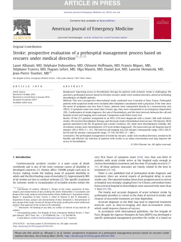American Journal of Emergency Medicine Stroke and first responders s…