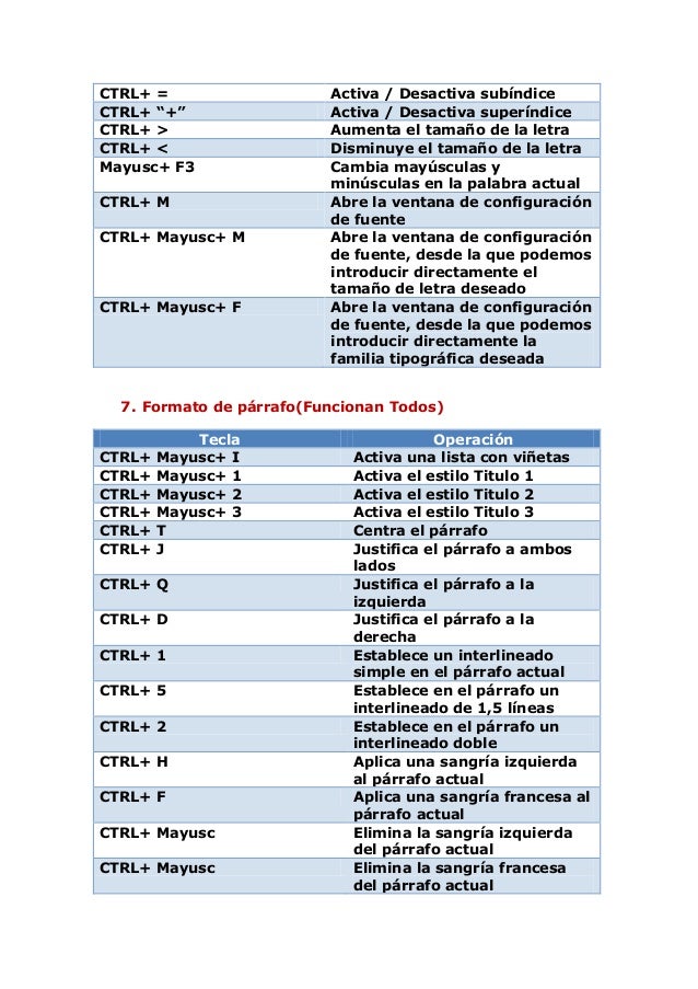 Combinaciones de Teclas en Word Texto Informática