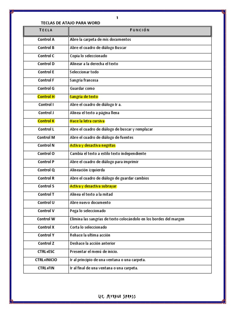 Teclas De Atajo Para Word Atajos, Clases de computacion, Aprender informatica