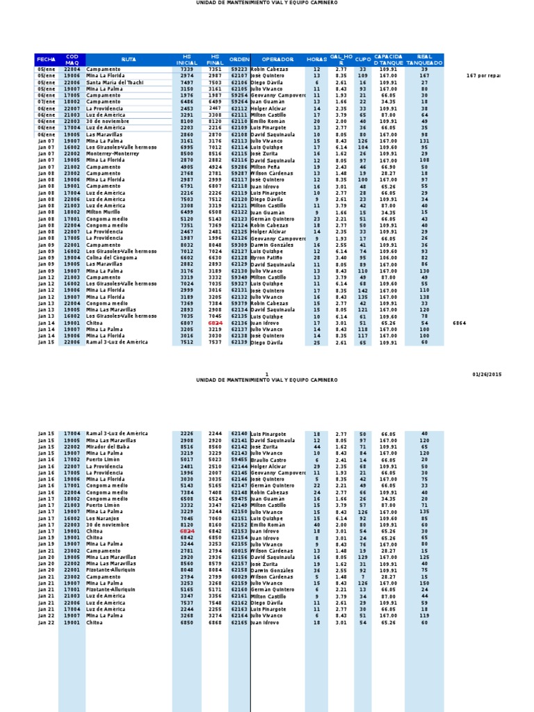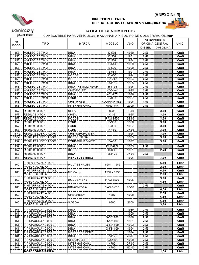 Tabla de Rendimientos de Combustible de Maquinaria PDF Industria del vehículo Equipo industrial