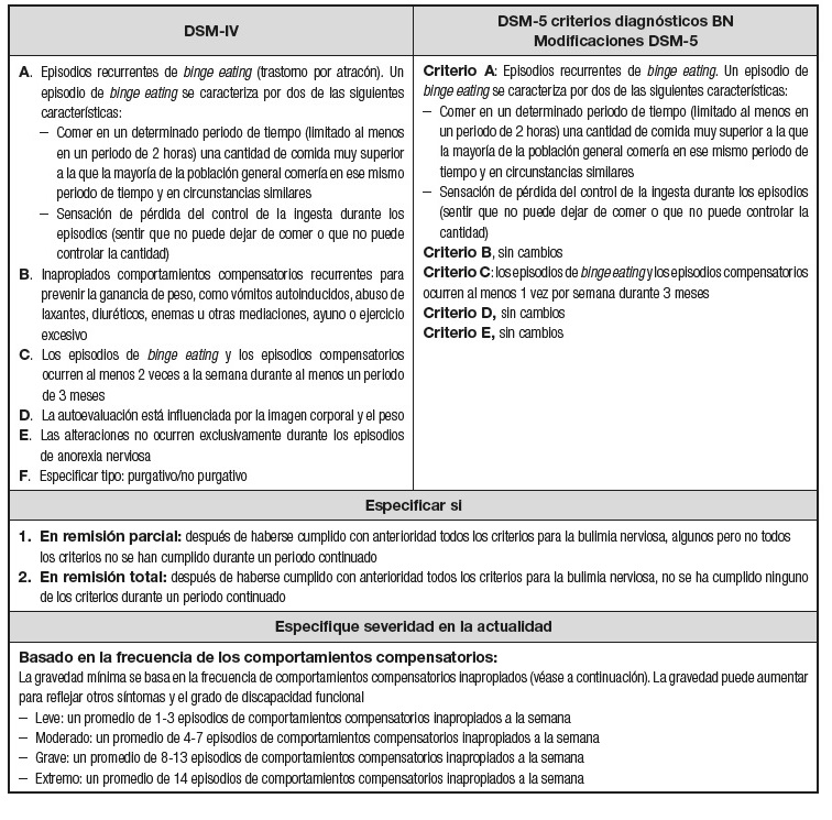Resumen. La bulimia nerviosa y el trastorno por atracón constituyen entidades nosológicas propias. Ambas muestran una gran variabilidad en su presentación y gravedad, lo que implica la individualización del tratamiento y la necesidad de equipos multidisciplinares.