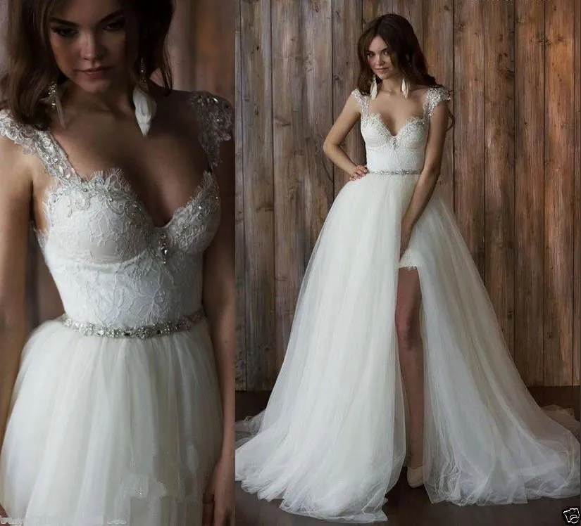 2016 Vestido De Noiva Renda Desmontable falda Sexy de Encaje de La Boda vestidos de Correa de la